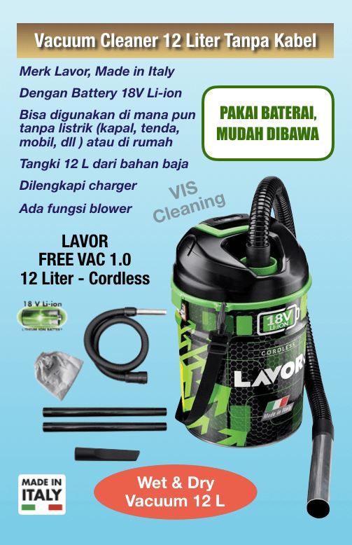 Vacuum Cleaner WET and DRY 12 Liter Lavor type Free VAC 1.0